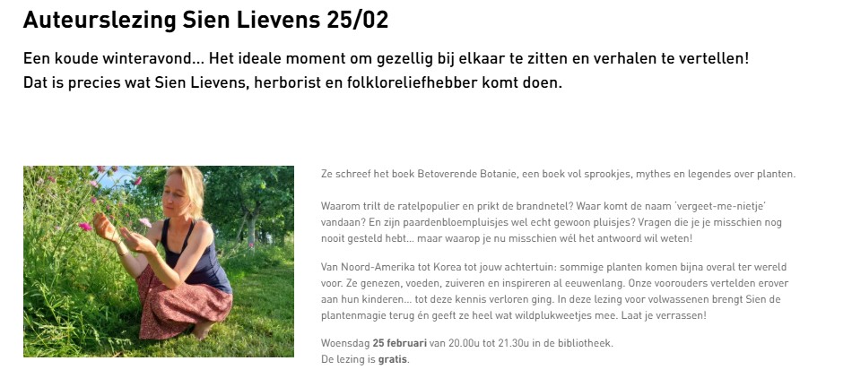 Op woensdga 9 juli 2025 mocht ik te gast zijn in de bib van Middelkerke voor twee lezingen. Eentje voor ouder & kind (we haalden er gezellig de vijzels bij voor een toverkruidenzout) en eentje voor volwassenen. Dankjewel voor al wie erbij was, dankjewel aan de gastvrije mensen van de bib en gemeente Middelkerke!